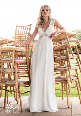 Die Bohemian Details erheben die wunderschönen Stickereien und Vintage Kristalle. Es ist eine einzigartige Kollektion, dennoch leicht und fließend zu tragen. Kelsey Rose möchte mit ihrer Brautmode allen Bräuten das Gefühl geben, die beste Version ihrer selbst zu sein .
